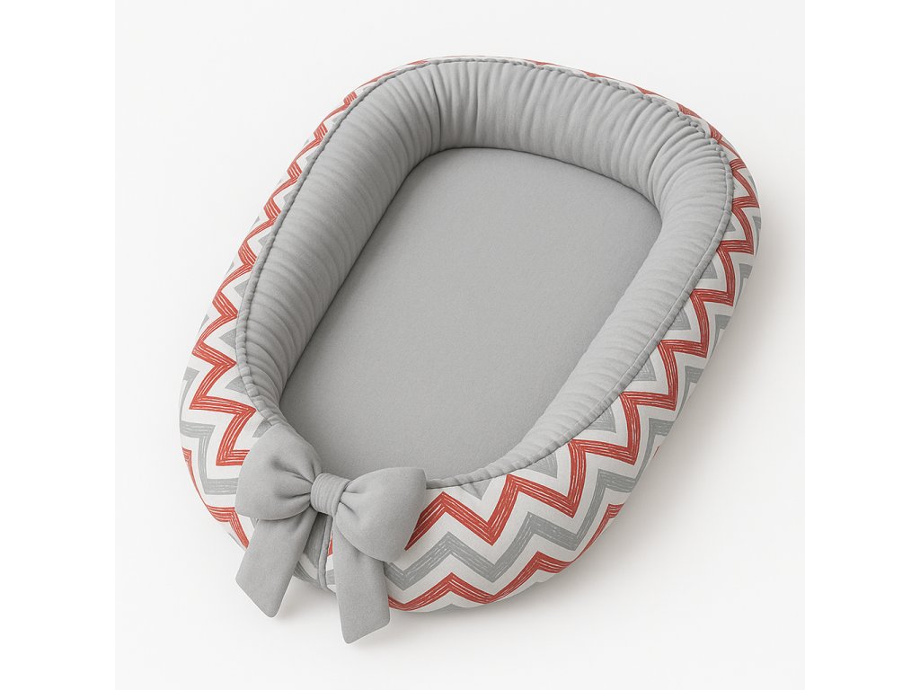 🔴 Hnízdečko s červeným cikcak vzorem a šedým vnitřkem pro odvážnější výbavičku ⚪👶