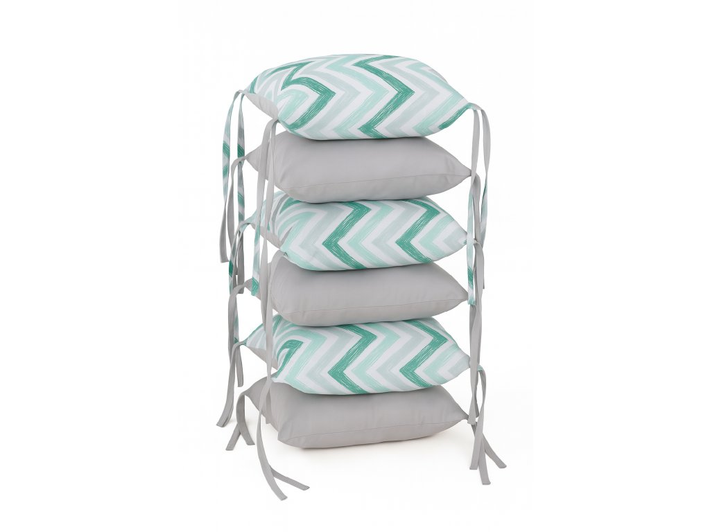 🍃 Polštářkový mantinel Cikcak Mint Grey je moderní a přitom jemný doplněk do postýlky. Cikcak vzor v šedé a bílé barvě působí nadčasově a díky svěží mintové barvě je celý mantinel krásně odlehčený – ideální pro miminka, u kterých nechcete nic přehnaně sladkého, ale přesto útulného.
