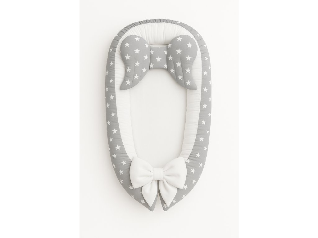 🤍 MAXIhnízdečko s šedou látkou s bílými hvězdičkami a sněhově bílým vnitřkem pro čistý, jemný a elegantní vzhled 👶⭐
