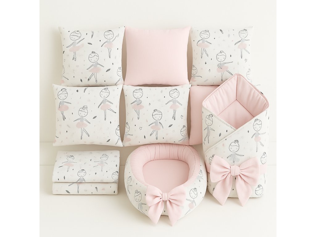 Vstupte do kouzelného světa něžných baletek, kde se snoubí jemnost, elegance a pohodlí. 💕 Tato luxusní sada je laděna do pudrově růžových tónů s hravým vzorem malých baletních víl, které rozzáří každý dětský pokojíček. 🩰✨