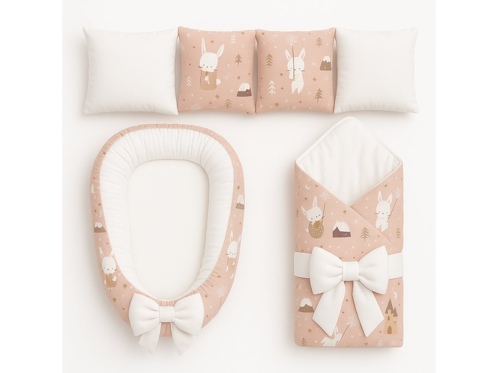 Měkké a hebké materiály spolu s precizním ručním šitím zajistí, že vaše miminko bude od prvních dnů obklopeno bezpečím a maximálním pohodlím. 🤍 Originální motivy roztomilých zajíčků dělají z výbavičky nejen praktického pomocníka, ale i krásnou ozdobu postýlky.