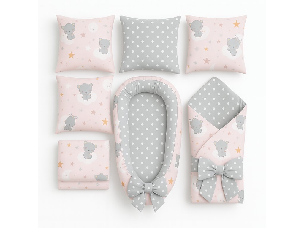 Měkké a hebké materiály spolu s precizním ručním šitím zajistí, že vaše miminko bude obklopeno bezpečím, pohodlím a hřejivou náručí. 🤍 Originální motivy roztomilých kočiček dělají z výbavičky nejen praktického pomocníka, ale i krásnou ozdobu postýlky.