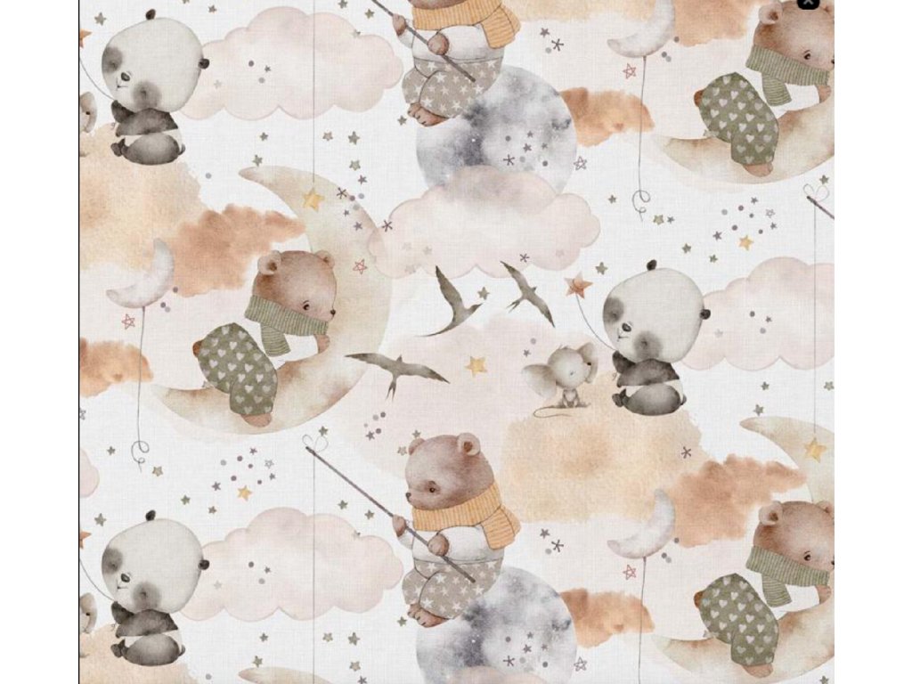 Objevte něžný svět plný medvídků, obláčků a hvězdiček, který vnese do dětského pokojíčku pohodu a bezpečí. 🐻☁️⭐ Jemné béžové tóny doplněné o roztomilé ilustrace medvídků působí hřejivě a útulně – ideální pro klidný spánek vašeho miminka. ✨
