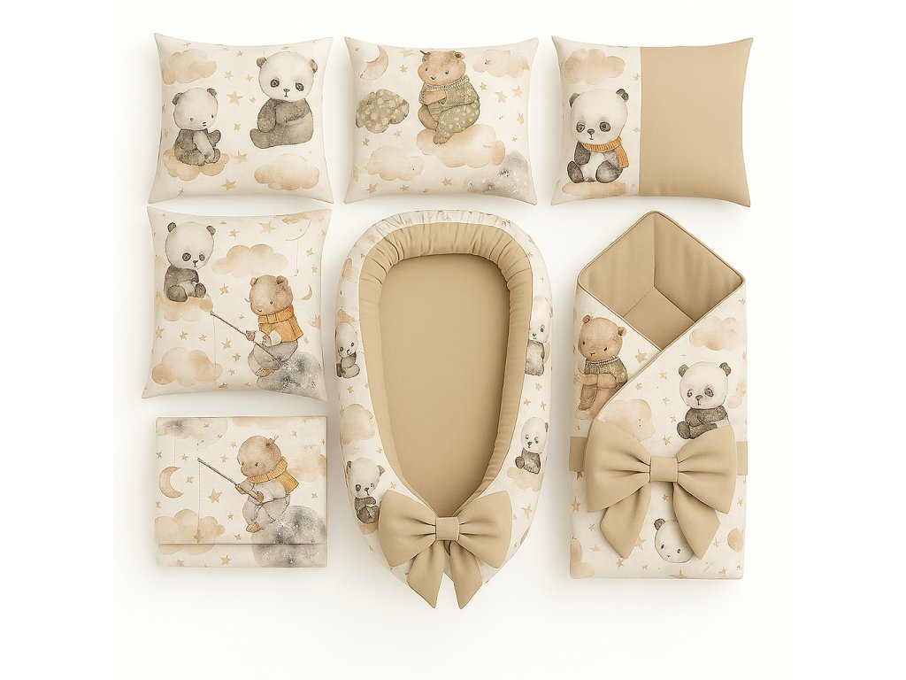 Měkké a hebké materiály spolu s pečlivým ručním šitím zaručí, že se vaše miminko bude cítit pohodlně a v bezpečí už od prvních dnů života. 🤍 Díky originálním motivům se výbavička stane nejen praktickým pomocníkem, ale i krásnou ozdobou postýlky.