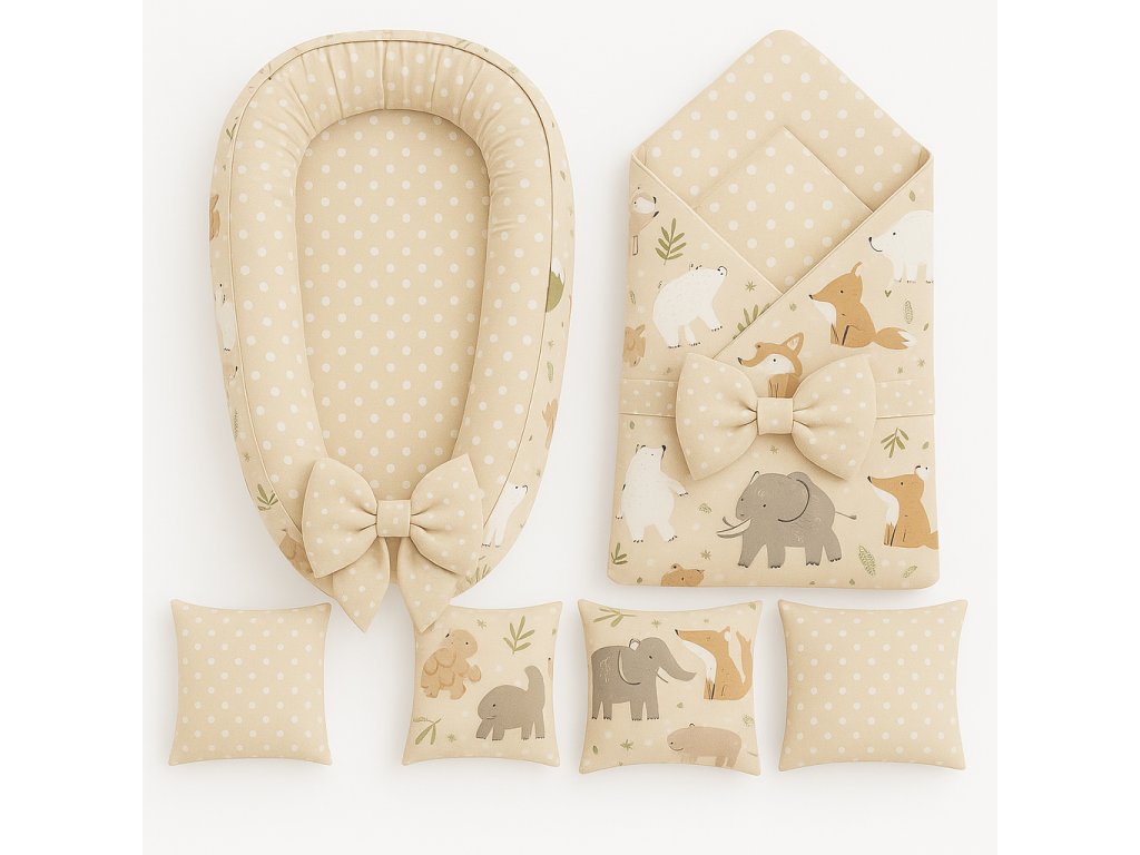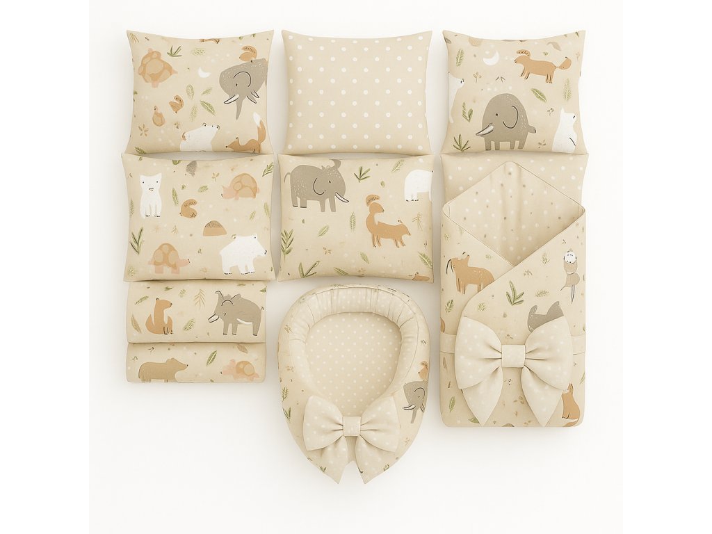 Měkké a příjemné materiály v kombinaci s precizním ručním šitím zajistí vašemu miminku maximální pohodlí a bezpečí už od prvních dnů. 🤍 Díky originálním ilustracím zvířátek se výbavička stane nejen praktickým pomocníkem, ale i krásnou ozdobou postýlky.