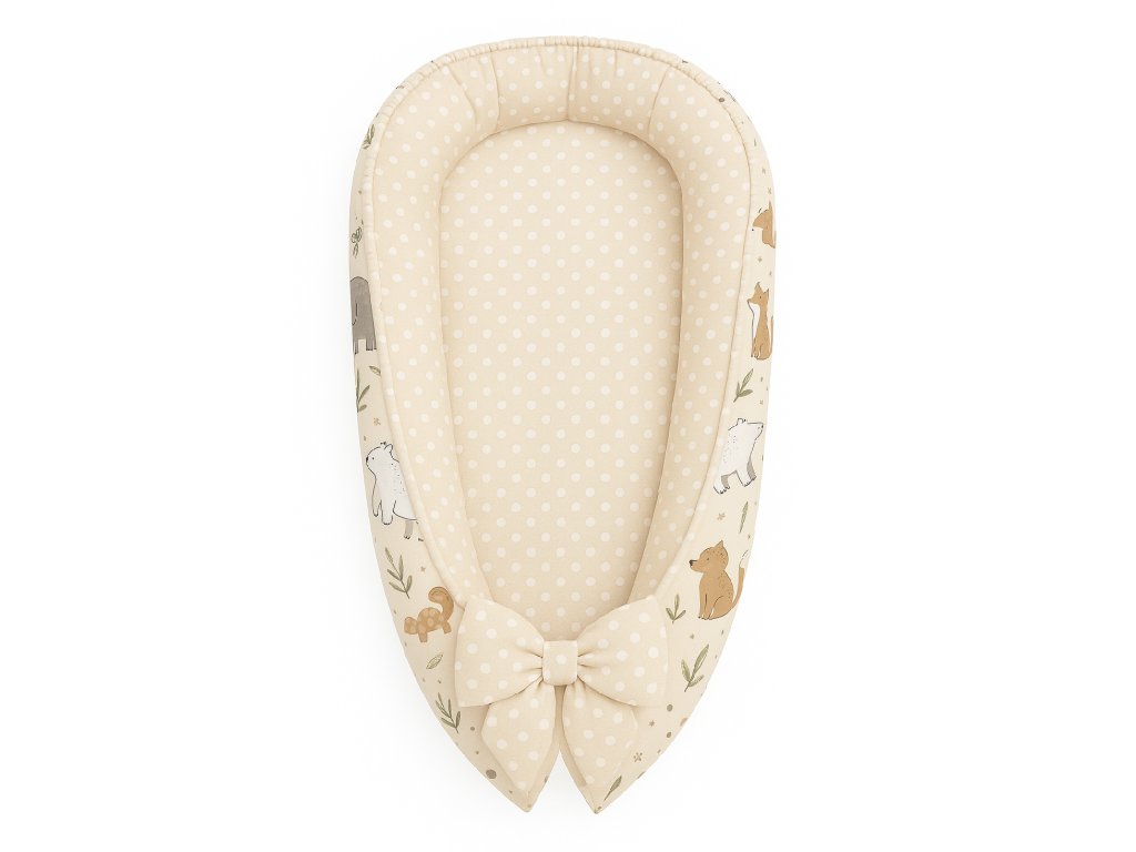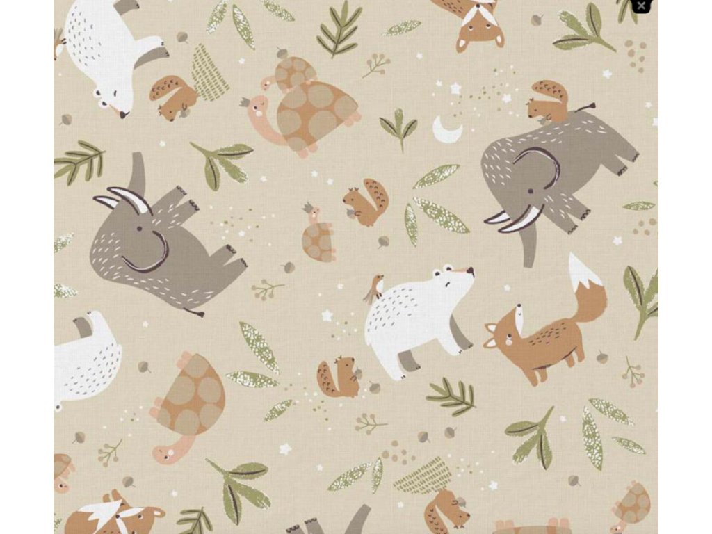 Objevte svět plný lesních zvířátek – od medvídků, slonů až po lišky a želvy, který přináší do dětského pokojíčku harmonii a klid. 🌿🦊🐻 Jemné béžové tóny s puntíky působí útulně a univerzálně, takže se sada hodí jak pro holčičky, tak pro chlapečky. ✨