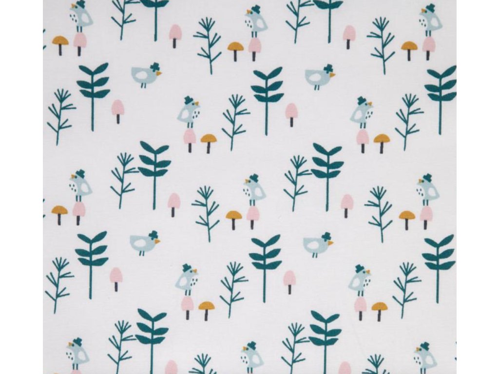 Sada Mini Elf Blue obsahuje hnízdečko a zavinovačku s pohádkovým vzorem stromečků, houbiček a lesních postaviček na světlém podkladu. Celý vnitřek tvoří jemná modrá látka, která navozuje pocit klidu a čistoty.