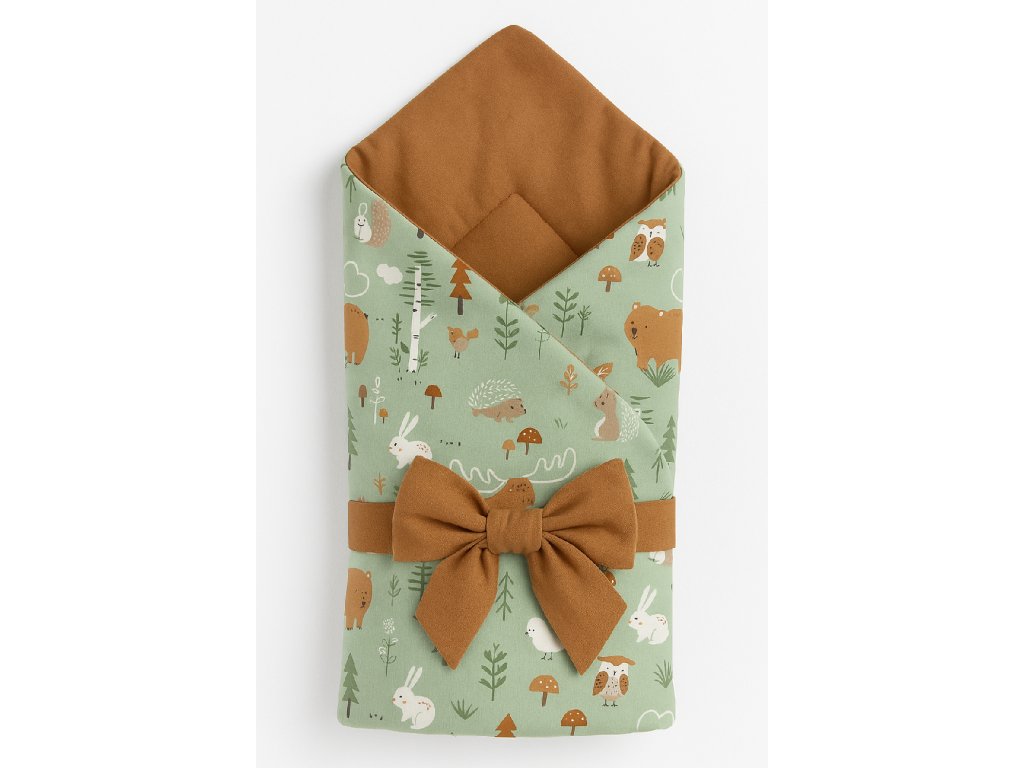 Roztomilá zavinovačka s motivem lesních zvířátek v kombinaci s jednobarevným hnědým vnitřkem je ideální pro každé miminko.